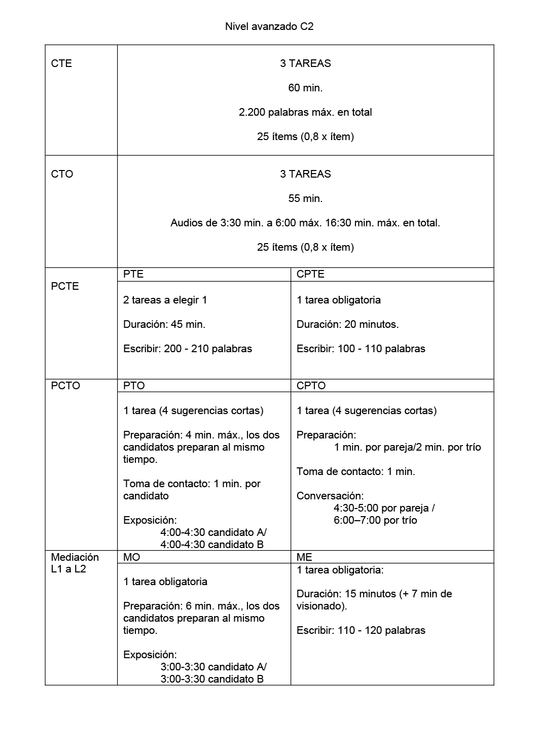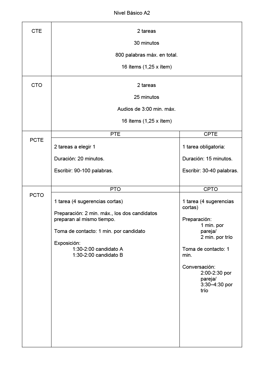 Las pruebas estarán compuestas de cinco partes que evaluarán las siguientes actividades de lengua: comprensión de textos orales, comprensión de textos escritos, producción y coproducción de textos orales, producción y coproducción de textos escritos y mediación oral y escrita.