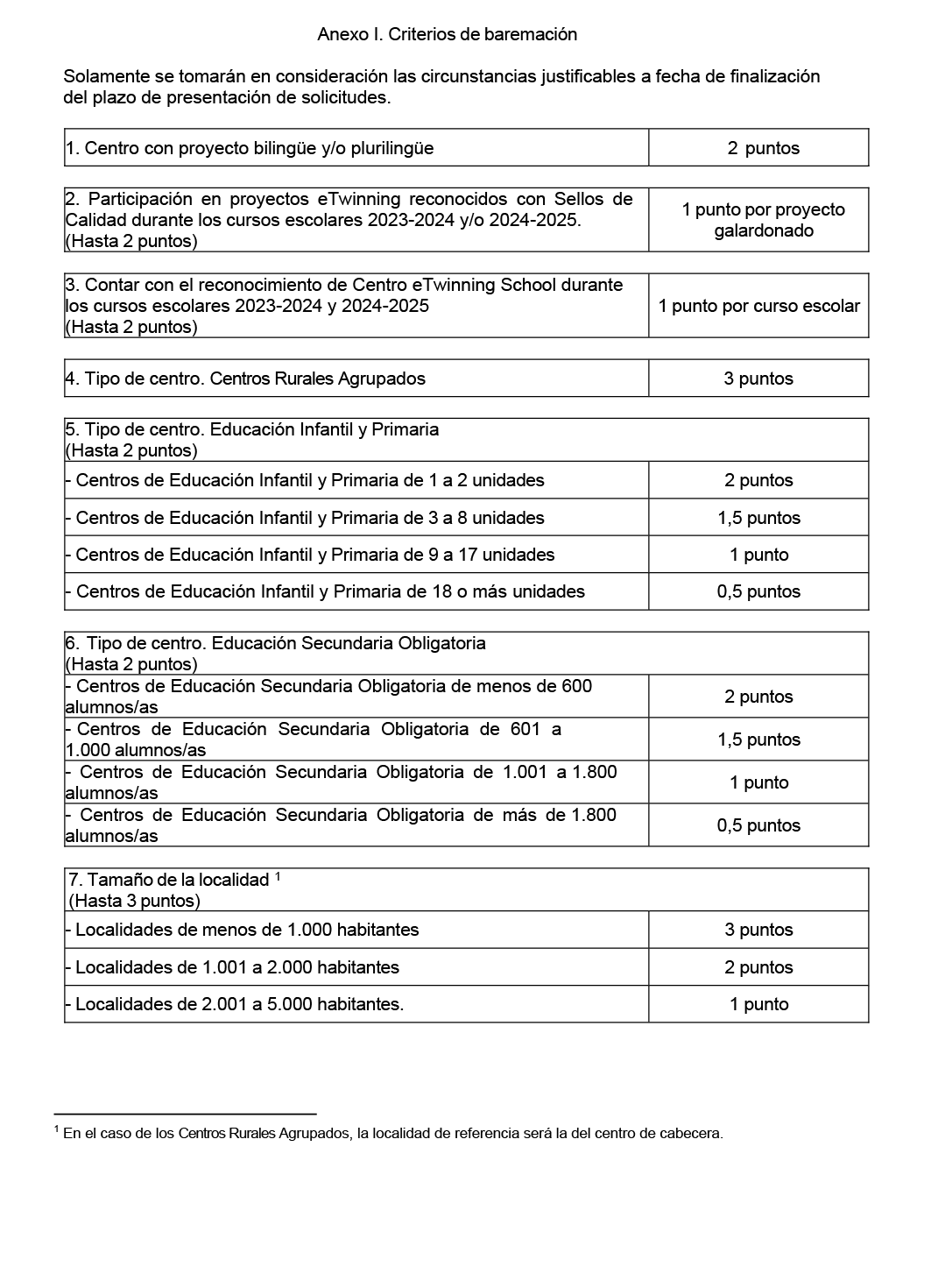 - Los criterios de baremación de centros a efectos de la selección de los mismos y el proceso de selección