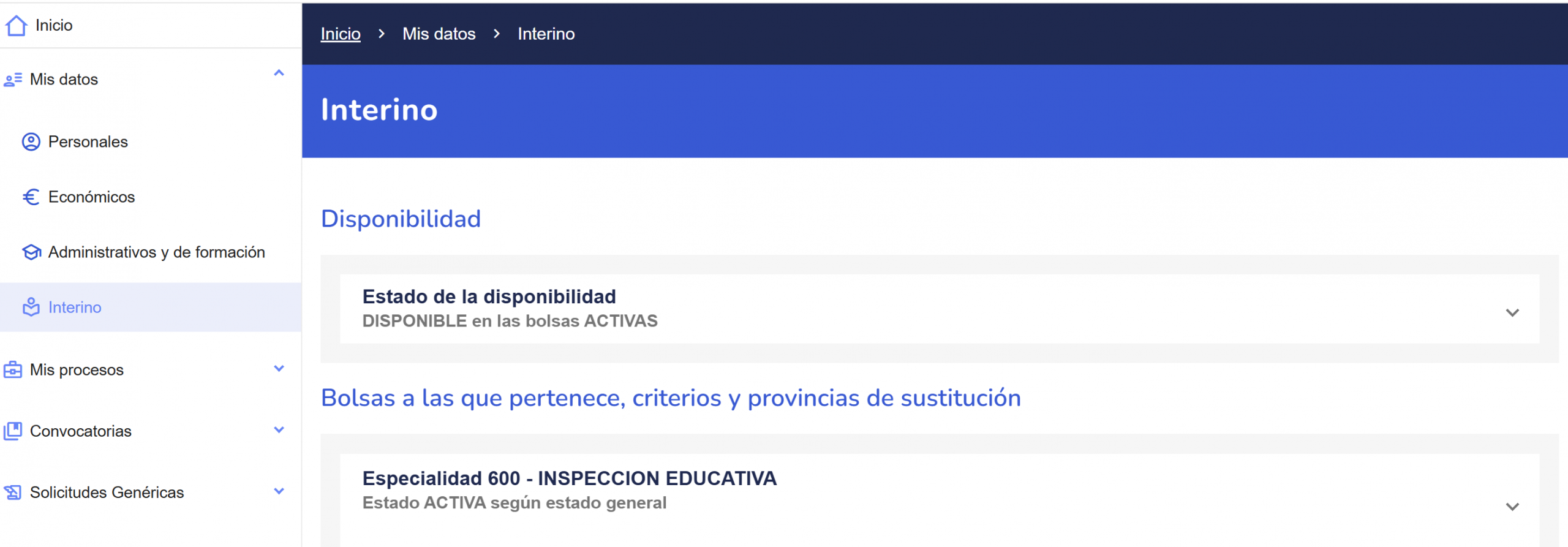 - Dale, en el menú de la izquierda, a la opción Mis Datos, después al submenú Interino.