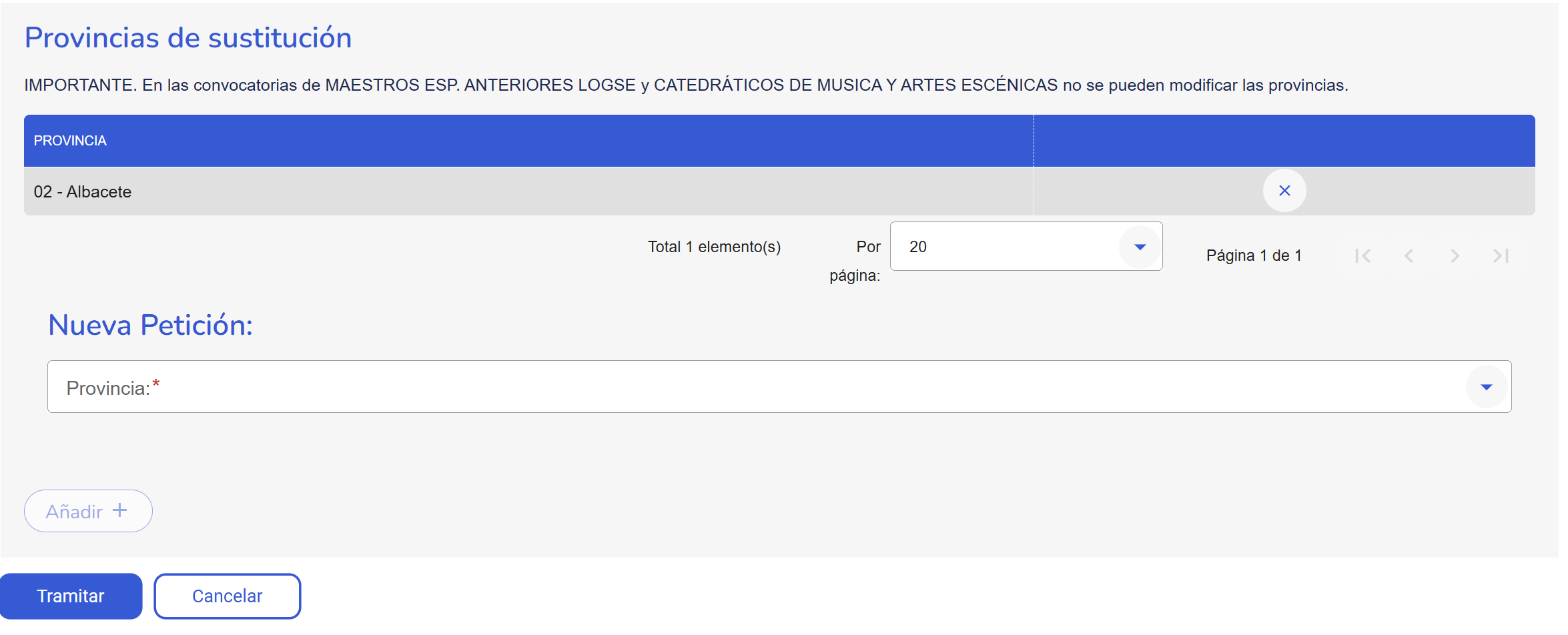 - Sólo se pueden adjudicar plazas en la provincia o provincias consignadas. Si no se ha consignado ninguna provincia, se atendería a la provincia correspondiente al domicilio.