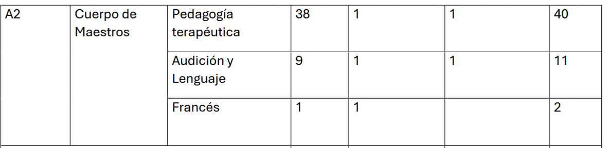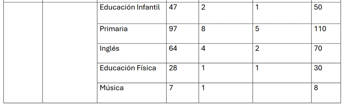 - La oferta aprobada en 2024 contemplaba las siguientes plazas