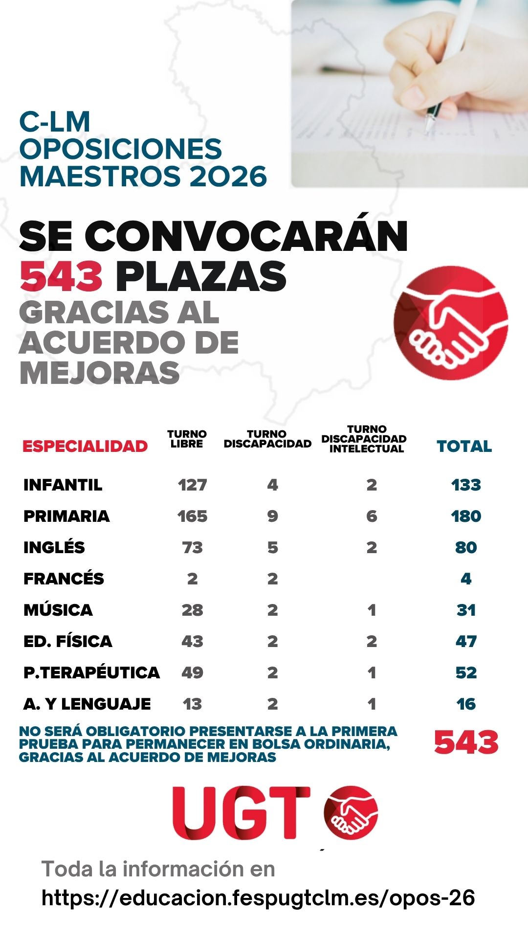 https://educacion.fespugtclm.es/opos-26/https://educacion.fespugtclm.es/storage/Captura-de-pantalla-2025-09-09-133350.pnghttps://educacion.fespugtclm.es/storage/Captura-de-pantalla-2025-09-09-133350-150x150.pngCastilla-La ManchaOposiciones CLM [histórico]SlideÚLTIMAS NOTICIAS: E. PÚBLICAEn esta sección iremos informando de todas las novedades Orden de actuaciones: letra Q Publicada la Resolución de 26/11/2025, de la Dirección General de la Función Pública, por la que se publica la letra para determinar el orden alfabético de actuación de las personas aspirantes en los ejercicios o pruebas de...UGT Enseñanza ensenanza.albacete@fespugtclm.esAdministratorEnseñanza UGT Servicios Públicos CLM