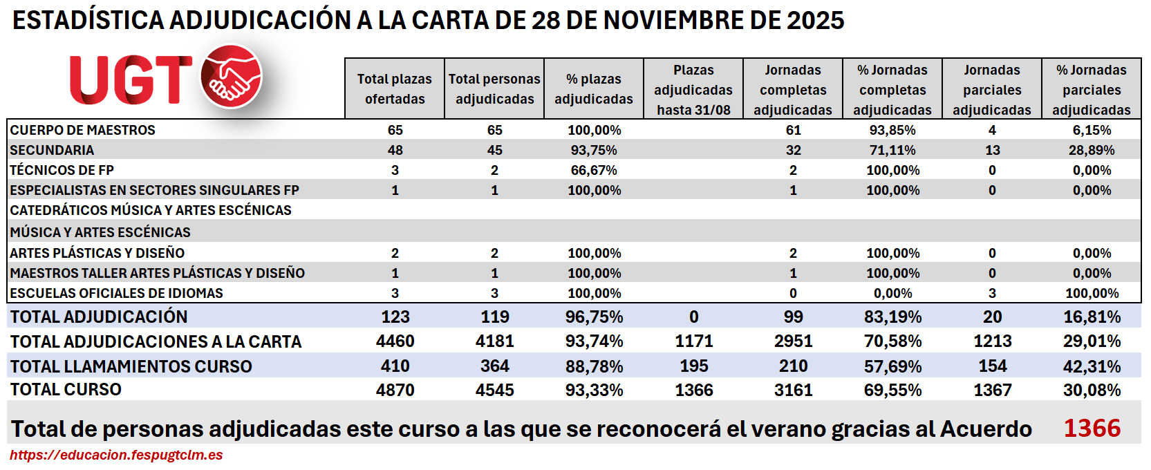 Adjudicación de sustituciones del 28/11/25 con el sistema “a la carta” conseguido con el Acuerdo de Mejoras