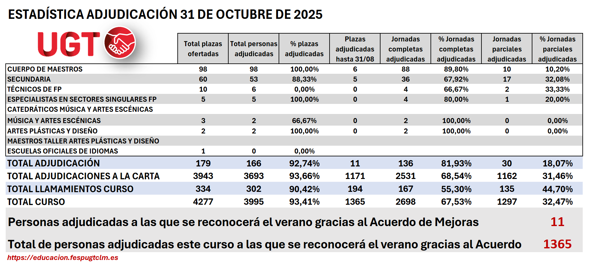 Adjudicación de sustituciones del 31/10/25 con el sistema “a la carta” conseguido con el Acuerdo de Mejoras