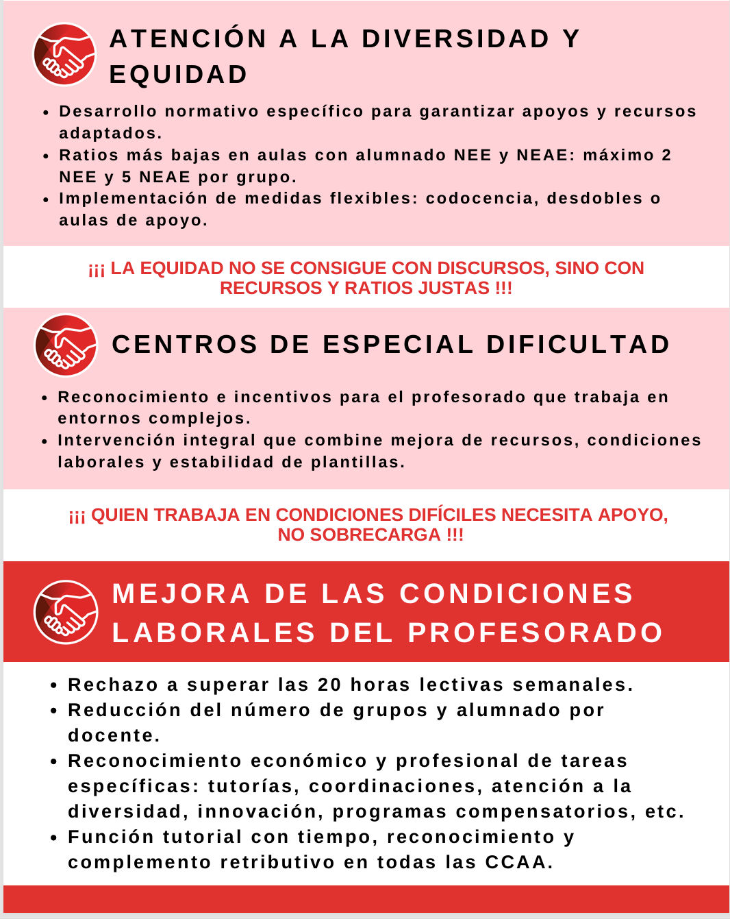 - Codocencia y desdobles: El sindicato propone incluir expresamente medidas organizativas como la codocencia y los desdobles para mejorar la atención en aulas con alta diversidad y optimizar los recursos humanos.