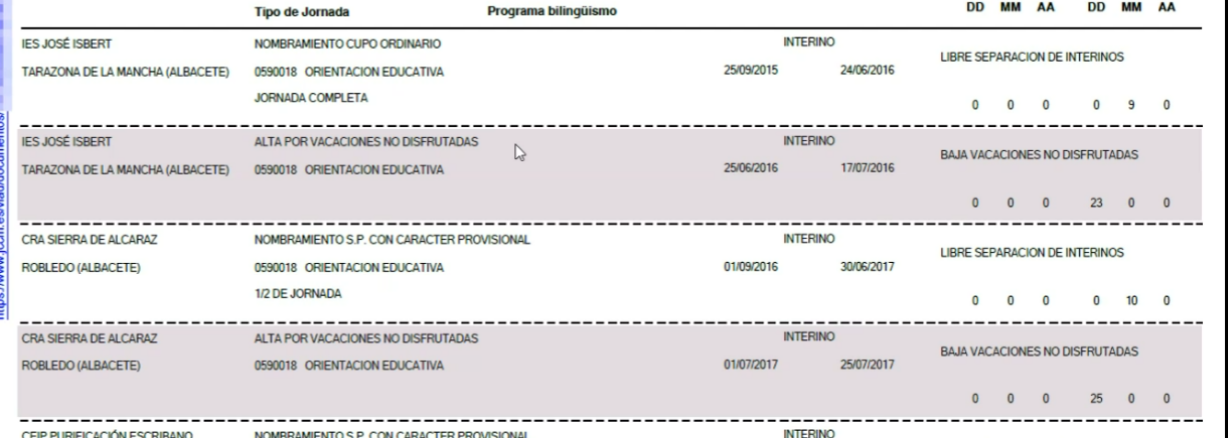- Se han reconocido días pero sin solapar días con otras sustituciones o con excedencias computables, porque no es posible. Tampoco se puede computar más de 1 año escolar por curso, no se pueden solapar servicios y vacaciones.