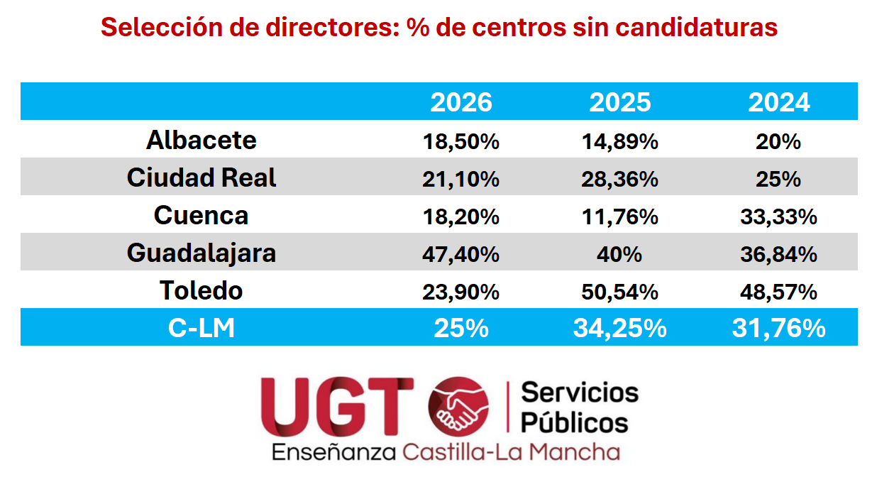 UGT LLEVA AÑOS DENUNCIANDO EN NUESTRA REGIÓN LA ESCASEZ DE CANDIDATURAS Y RECLAMANDO MEJORAS PARA LOS EQUIPOS DIRECTIVOS
