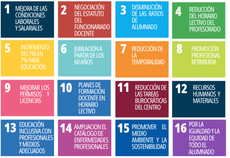 - Unas condiciones laborales muy precarias para el profesorado interino, el cual podría ser ya funcionario de carrera si no se mantuvieran año tras año tasas de interinidad tan elevadas.